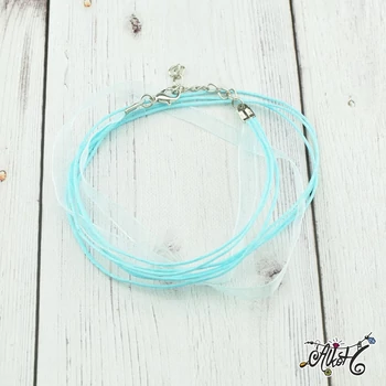 Halvány türkiz színű, készre szerelt, organzából és viaszolt szálból álló nyaklánc alap, platina színű kapoccsal és lánchosszabbítóval. A szalag szélessége: 6 mm A viaszolt szál vastagsága: kb. 1 mm A nyaklánc teljes hossza: 43 cm Az ár 1 darab nyaklánc alapra vonatkozik. |