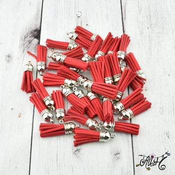 Piros színű kisméretű velúr hatású műbőr bojt csomag, platina színű fém kupakkal. Hosszúsága: 3,5 cm Az ár a csomagra, azaz az 35 darab bojtra vonatkozik. |