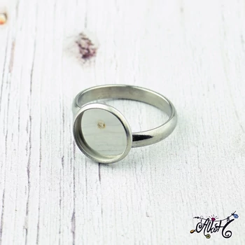 Orvosi fém, azaz nemesacél gyűrű alap, 10 mm belső átmérőjű tányér résszel, amelybe 10 mm-es (üveg)lencse ragasztható. A gyűrű alap körmérete 17 mm. Az ár 1 darab alapra vonatkozik. |