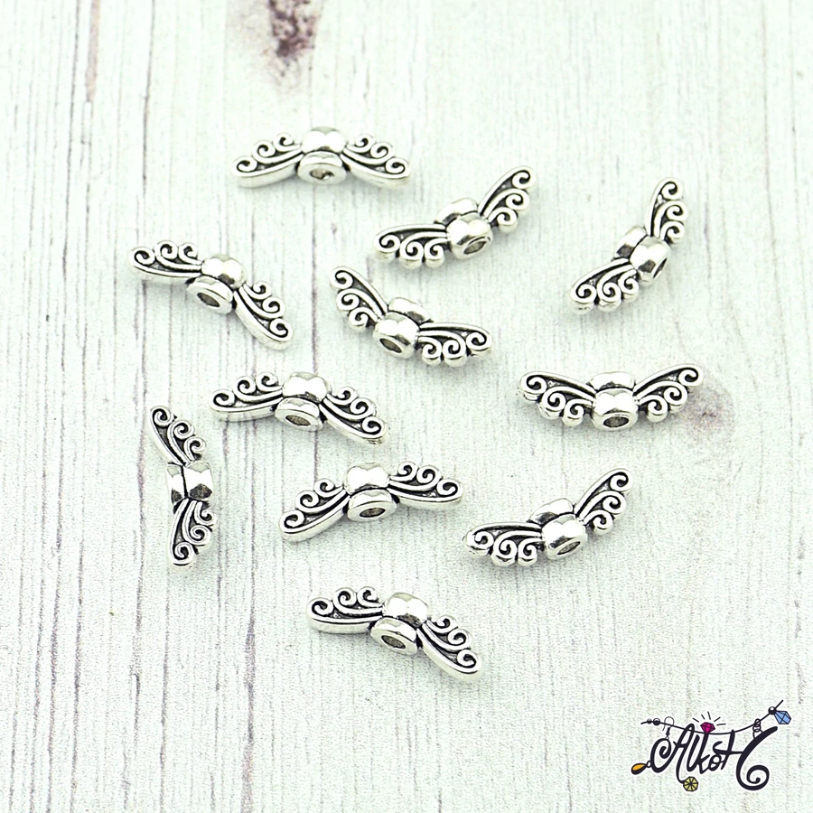 Tibeti ezüst színű kisméretű angyalszárny köztes elem.